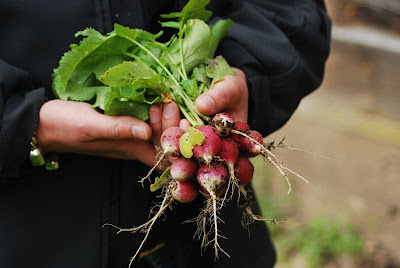 Rośnie, ja daleko mam do rolnika ale rośnie. Wszystko, głównie trawa i chwasty. Ale wczoraj był też dzień pierwszych plonów z siedliska. Rzodkiewek, rukoli, szpinaku. Pracy masa by mieć swoje warzywa, mniej wypasione niż w sklepach, ale takie nasze. Z naszej ziemi, no i bez chemii. Więc ich smak też niesamowity.